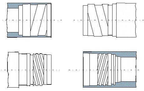 Beim BTA– und Ejektorbohren werden die Bohrwerkzeuge über ein Anschlussgewinde (Aufnahmegewinde) an das Bohrrohr geschraubt. Die gebräuchlichsten Gewinde sind das eingängige sog. BTA-Gewinde und das viergängige Gewinde (Ejektor-Gewinde).