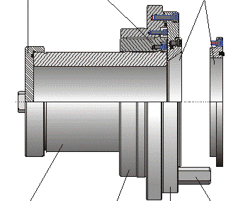 eine aufschraubbare Kappe abgedichtet. Das Gehäuse des Gegenhalters kann auch als Führungsbuchse eines Schälvorgangs dienen oder eine Ziehaufbohrbuchse für einen Ziehaufbohrvorgang aufnehmen. Er trägt über den Aufnahmeflansch eine Werkstückaufnahme.