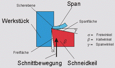 (z.B. Werkzeuge mit einer oder mehreren genau definierten Schneiden (Drehmeissel, Fräser)), und dem “Spanen mit geometrisch unbestimmter Schneide” (z.B. Schleifen